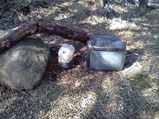 There was some sort of dead animal in there, an old TV, and signs of camping.